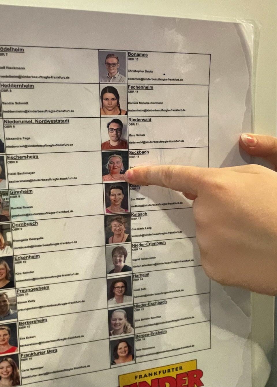 Charlotte: Ich fand die Station „Sag deine Meinung!“ toll, da man sich Dinge wünschen konnte. Man konnte seine Wünsche auf Postkarten schreiben und an die Kinderbeauftragte von Seckbach, Stefanie Krieger, schicken. Ich habe meinen Namen und unsere Schule darauf geschrieben, damit sie mir zurückschreiben kann. Es gab eine Liste mit allen Kinderbeauftragten von Frankfurt.