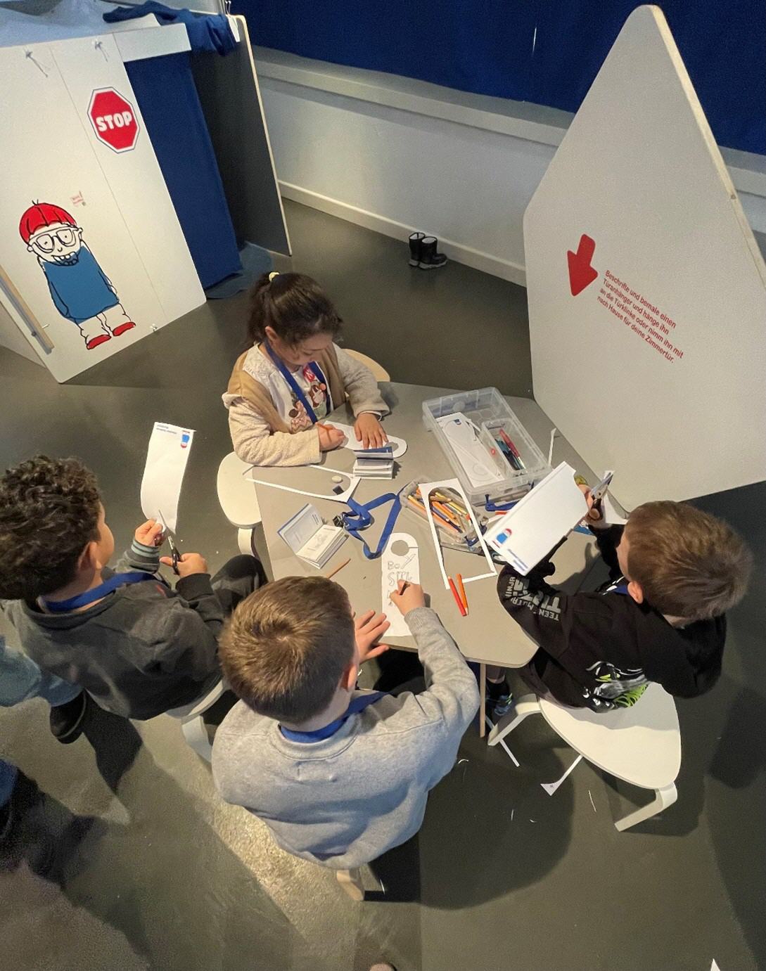 Gut gelaunt liefen wir dann in unser Stockwerk im Jungen Museum. Wir hatten zuvor schon in der Schule besprochen, dass wir eine Reise „durch das Labyrinth der Kinderrechte“ machen würden und waren gespannt auf unsere Reisepässe, in denen wir Stempel sammeln durften.