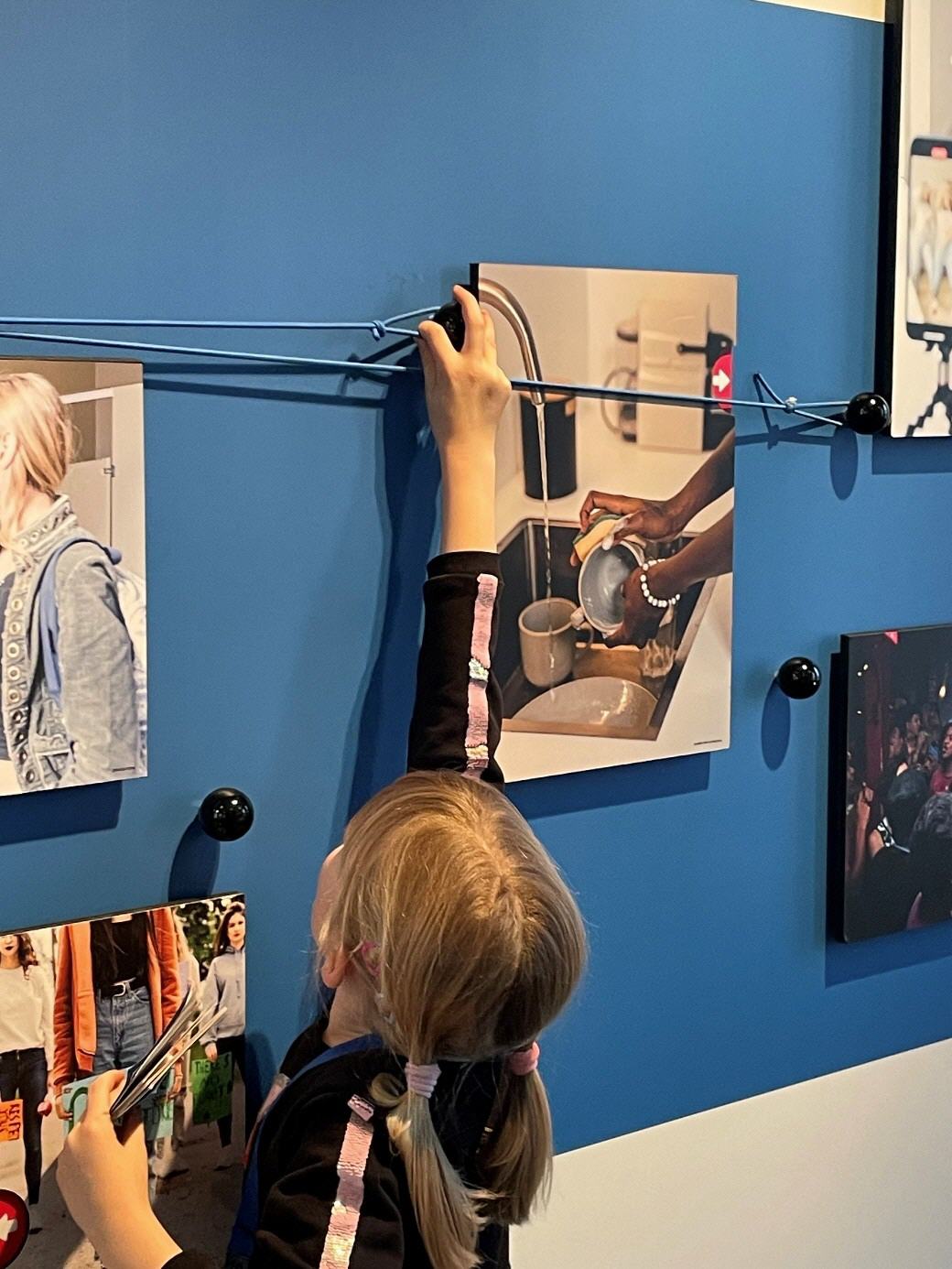 Mohamed Amin: An meiner Lieblingsstation gab es eine Wand, auf der die Meinungen von verschiedenen Kindern und Jugendlichen aufgeschrieben waren. Ein Mädchen wollte mehr Zeit haben, um mit ihren Freundinnen Tanzvideos aufzunehmen. Ein Junge, der schon etwas älter war, hat sich gewünscht, dass er auch schon wählen und Auto fahren darf. Hier sollte man mit Gummiseilen die Sätze der Kinder mit den passenden Bildern verbinden – zum Beispiel ein Auto mit der Meinung von dem Jungen.